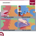 Covoras puzzle colorat Knorr Toys Cifre si Litere Pink Rosa 110 piese 180x180 cm din spuma moale Eva, izolator si antiderapant 0 luni+