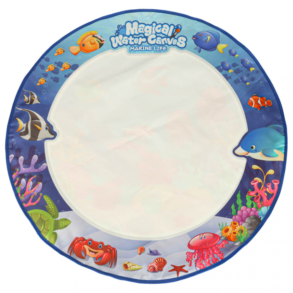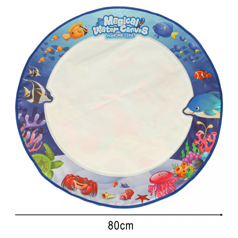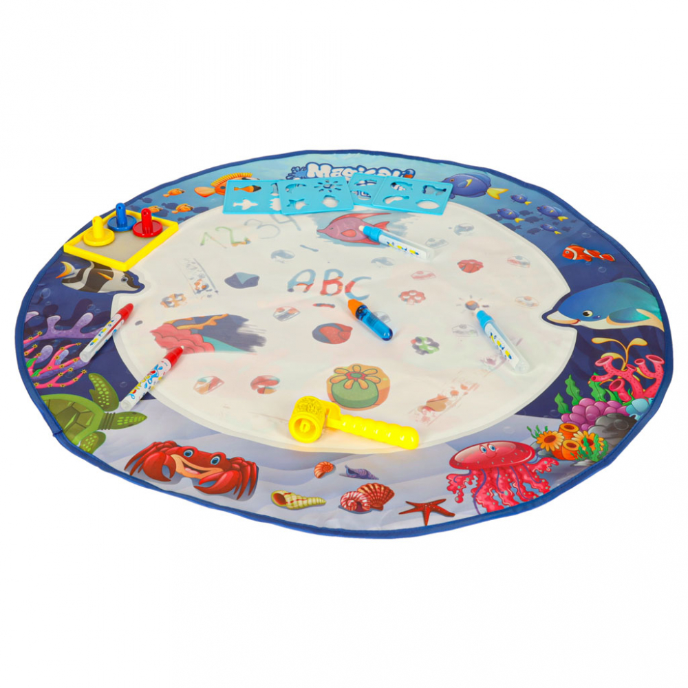 Covoras rotund pentru pictura cu apa, Ikonka, reutilizabil, cu uscare rapida, markere, stampile, sabloane incluse, diametru 80 cm, Aquatic World