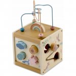 Cub educational din lemn Nukido Montessori NK-861 cu activitati pentru bebelusi,circuit,sortator forme