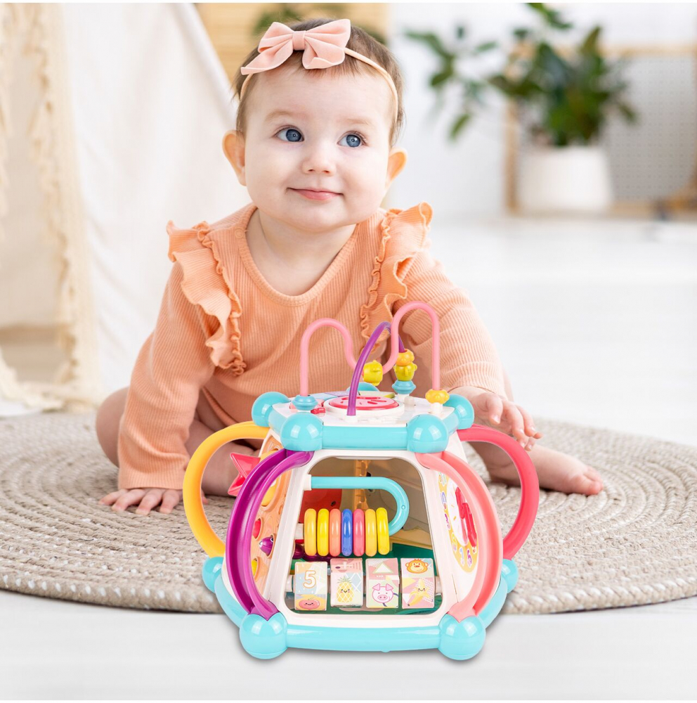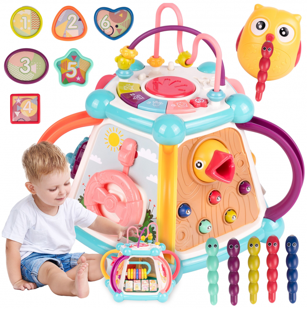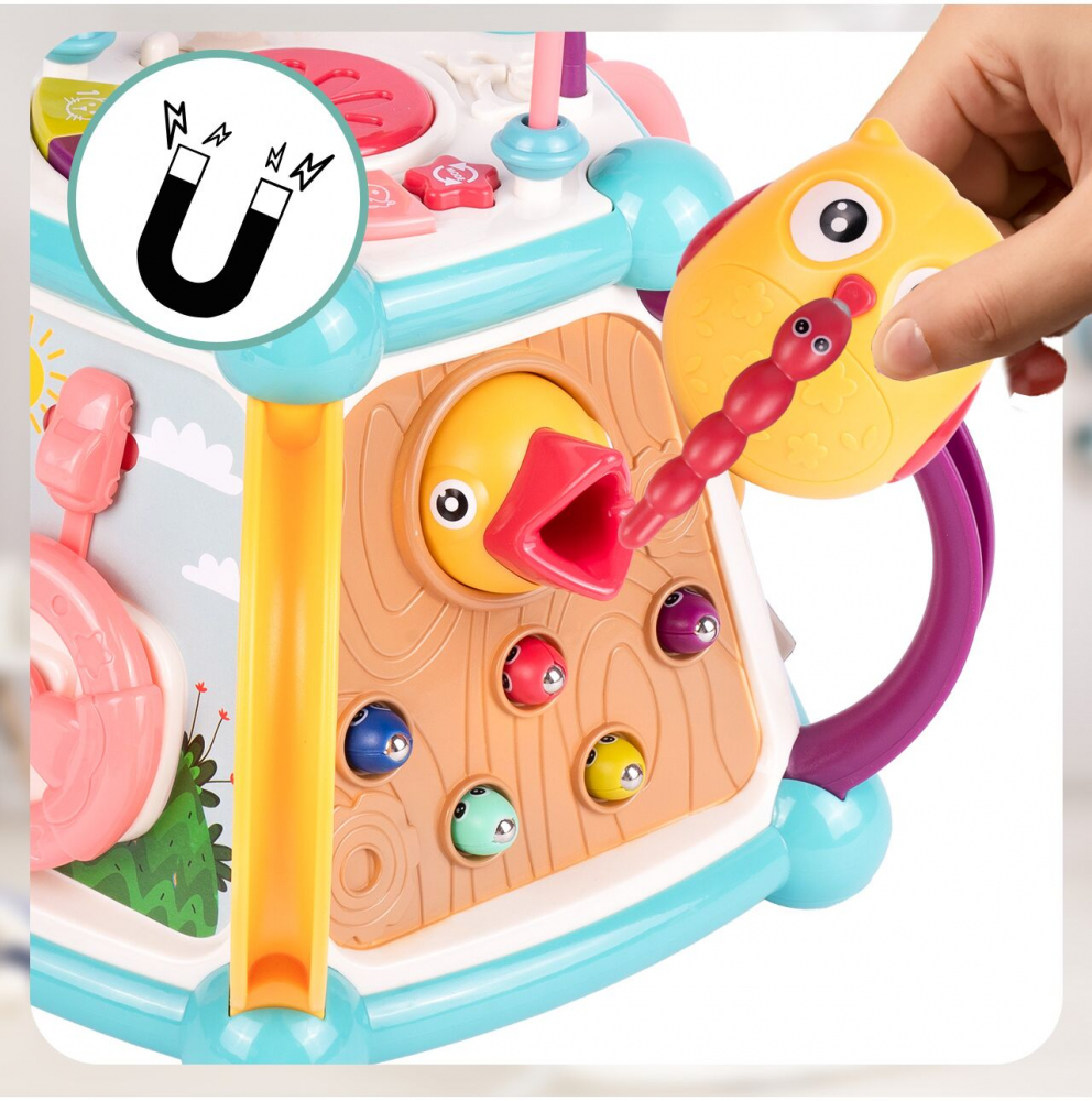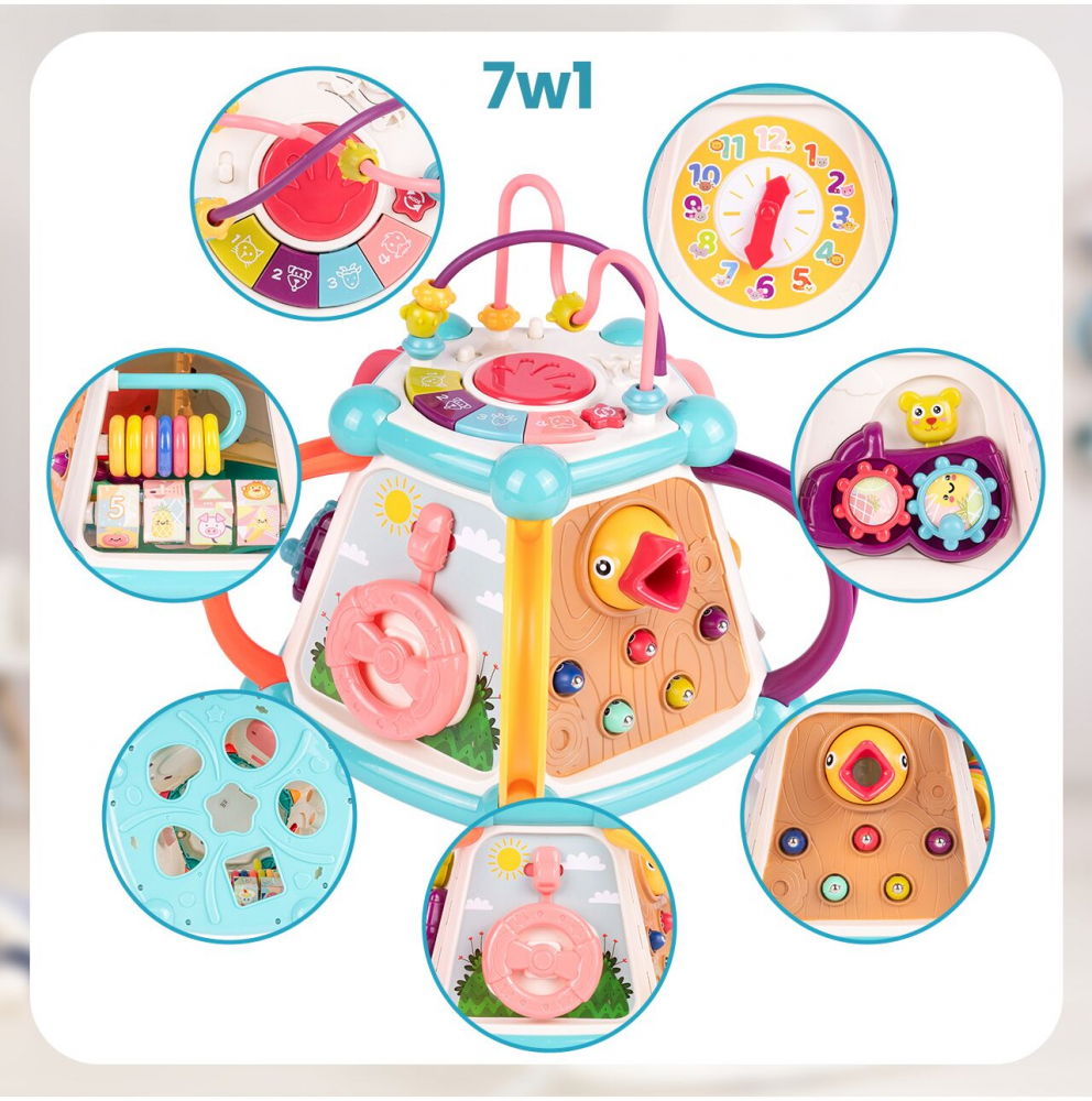 Cubul educațional 7-în-1 oferă o varietate de activități care angajează copilul în învățarea interactivă.