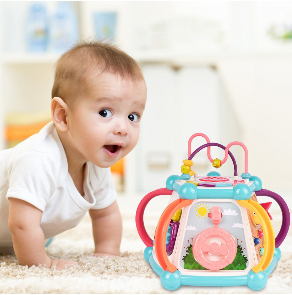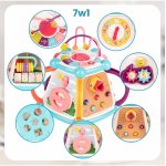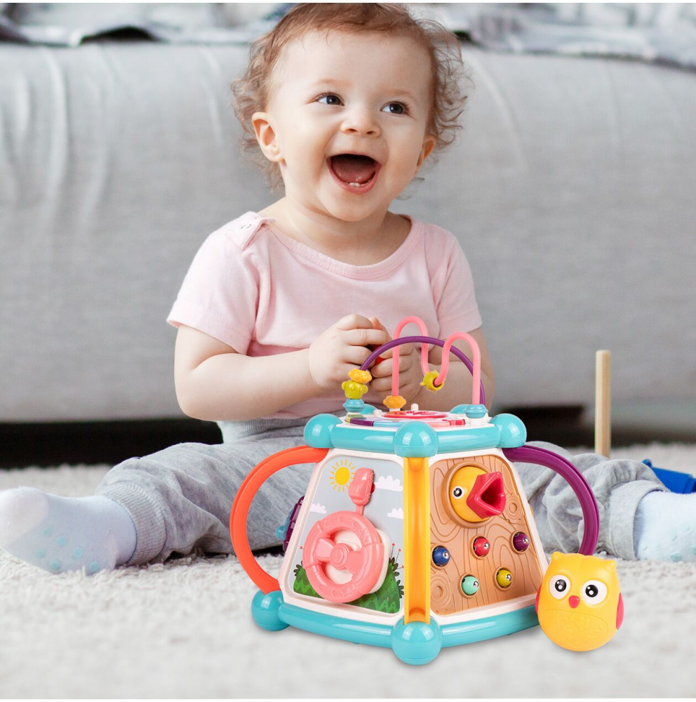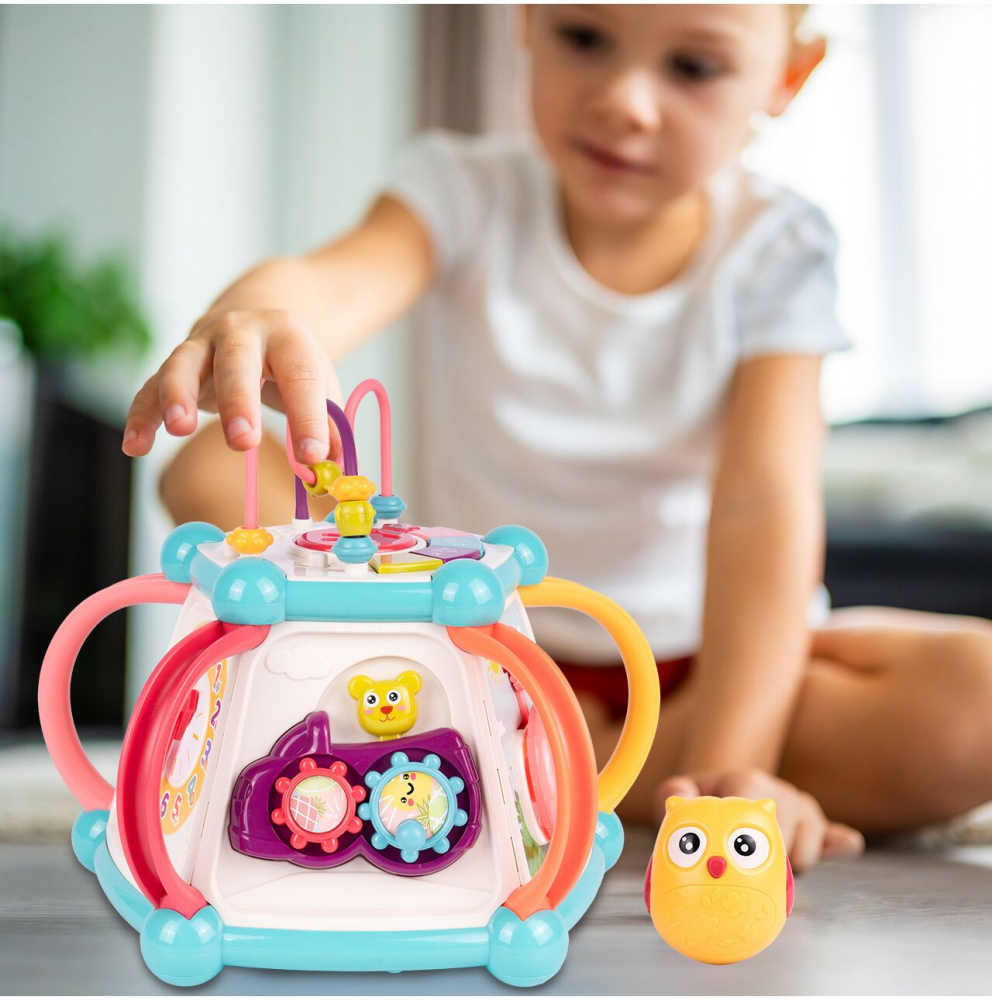 Cubul educațional 7-în-1 oferă o varietate de activități care angajează copilul în învățarea interactivă.