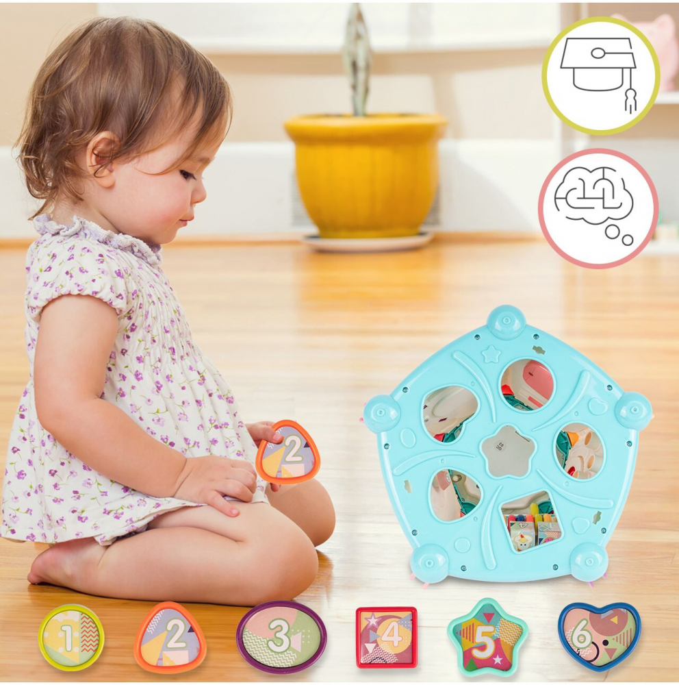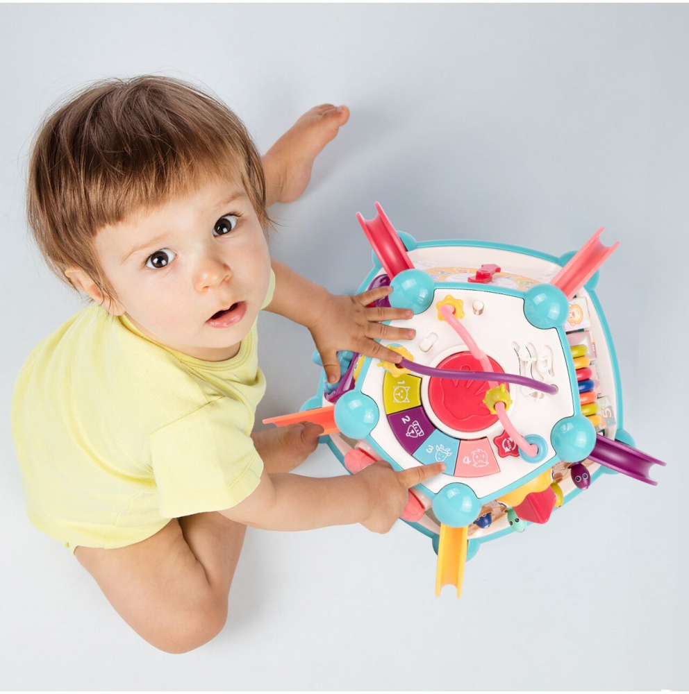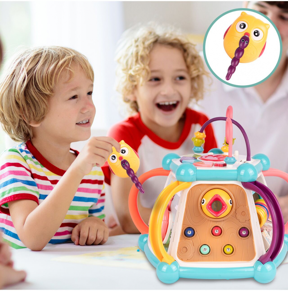 Fiecare parte a jucăriei prezintă un joc sau o sarcină diferită, care stimulează mintea și permite învățarea prin joc. Acest lucru ajută la dezvoltarea abilităților de rezolvare a problemelor și de gândire creativă.