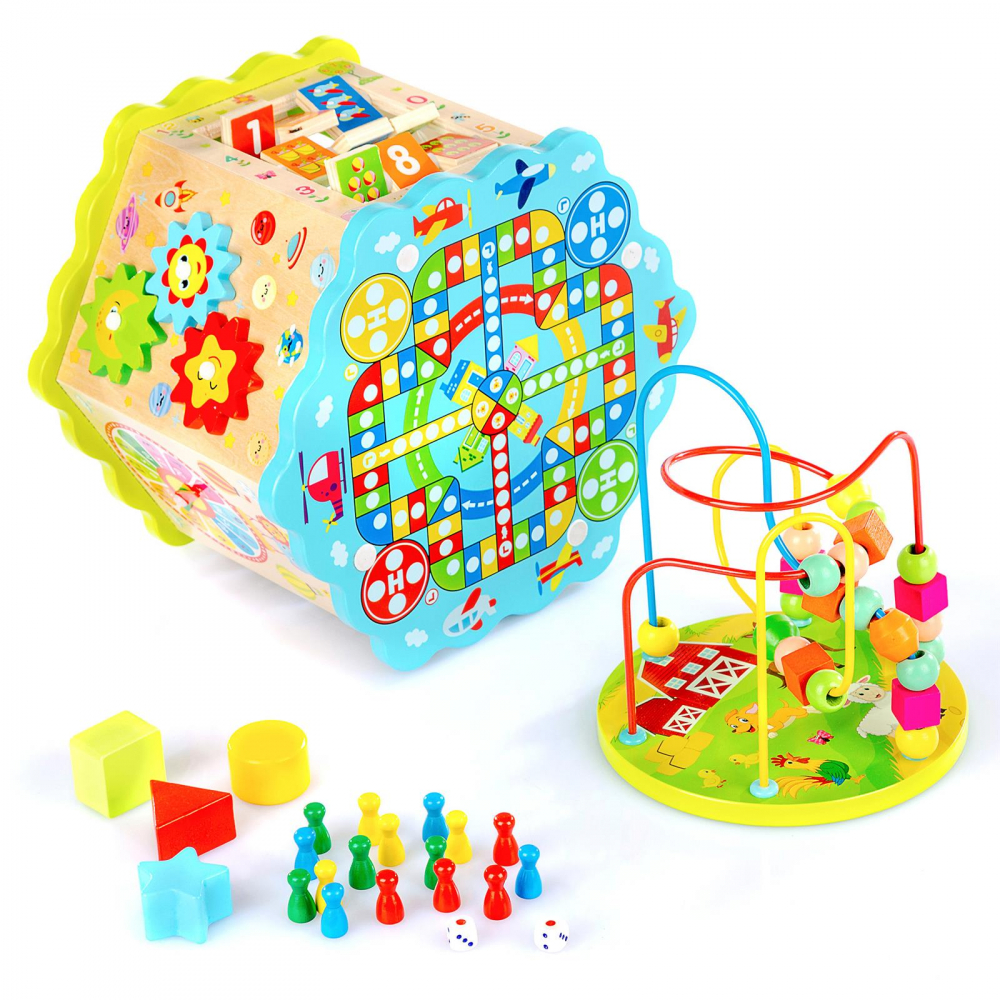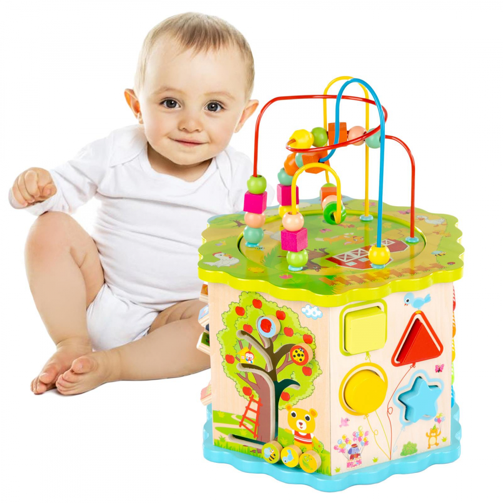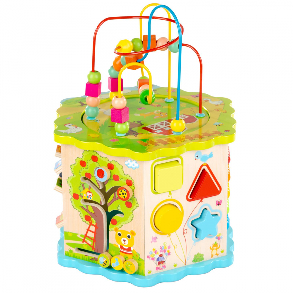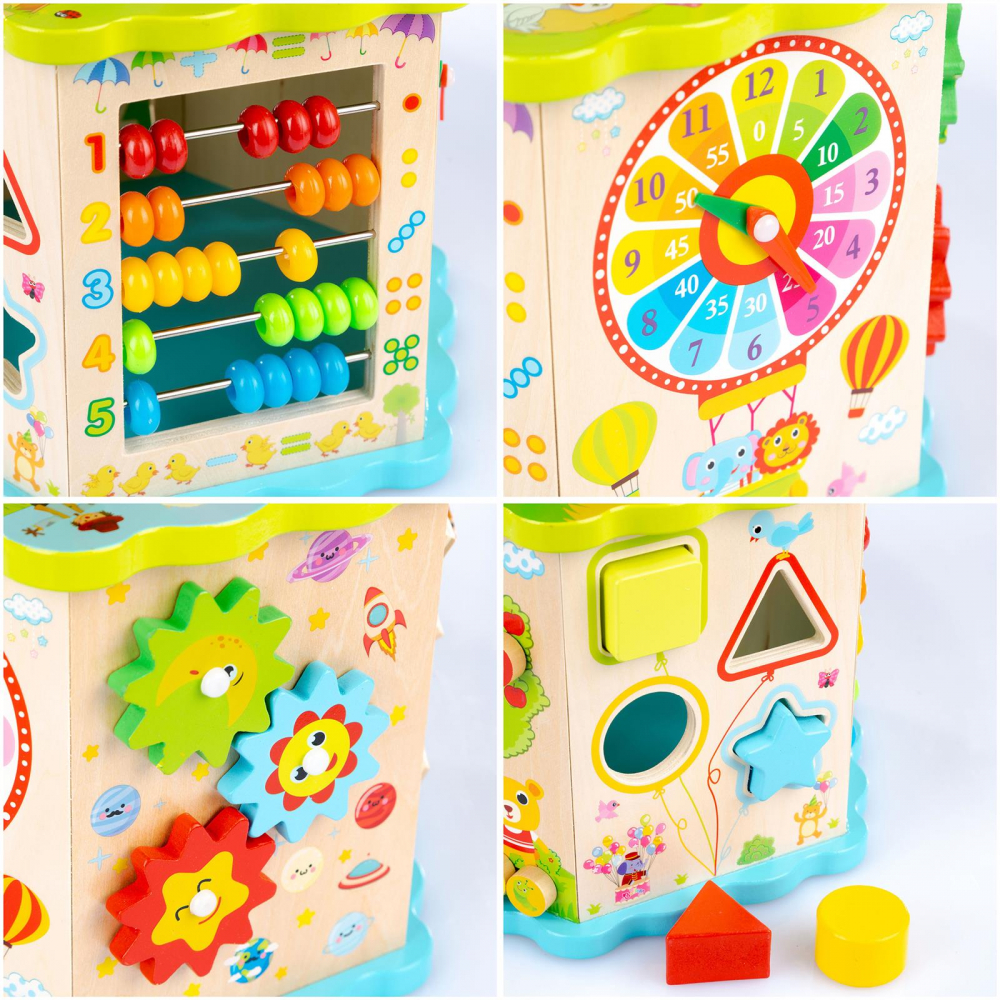 Cubul incurajeaza dezvoltarea abilitatilor motorii, coordonarii mainilor, imaginatiei si rezolvarii problemelor. Placuta la atingere, fara margini ascutite. Design unic si de inalta calitate.