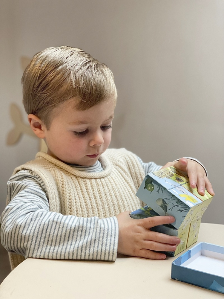 Design inovator – Cuburile sunt conectate astfel încât pot fi manipulate în toate direcțiile, permițând compunerea unui număr mare de imagini și stimulând curiozitatea copiilor.
