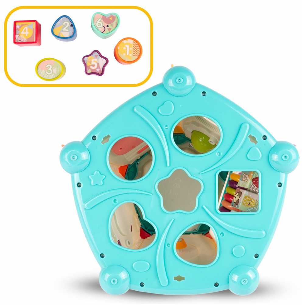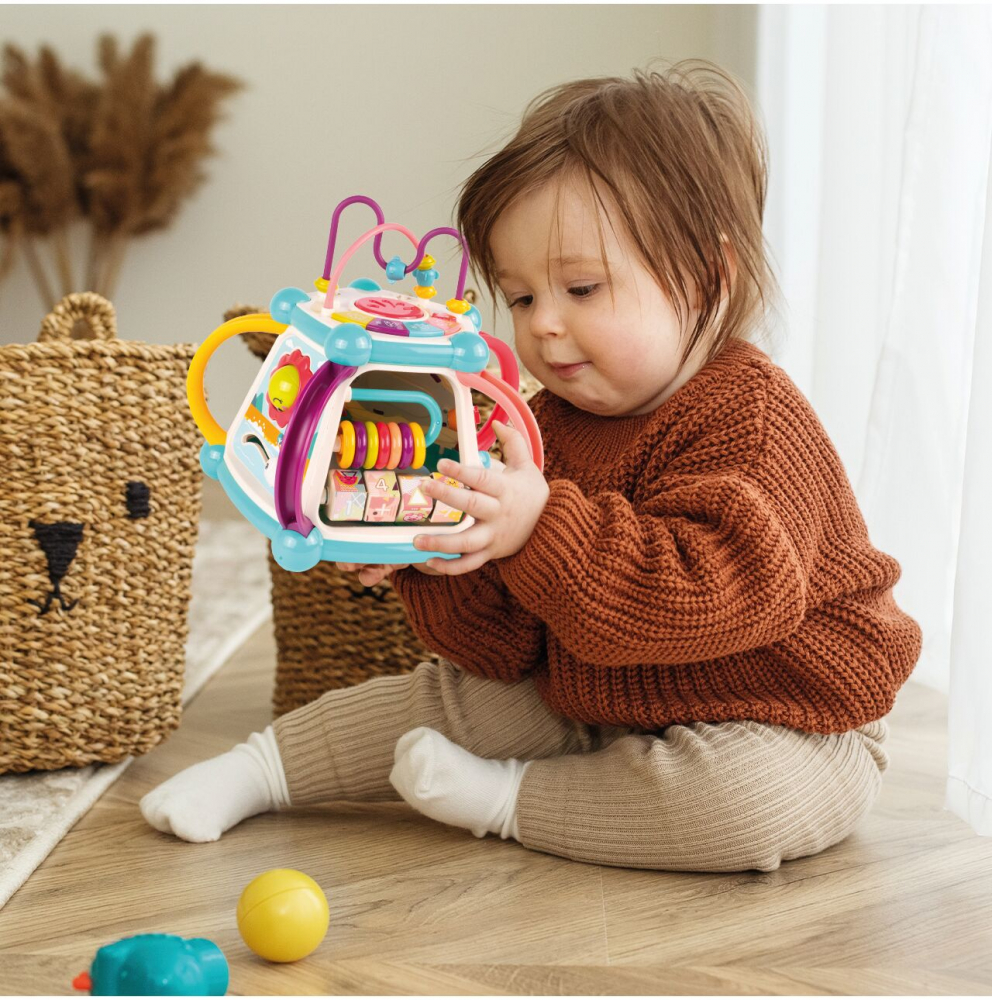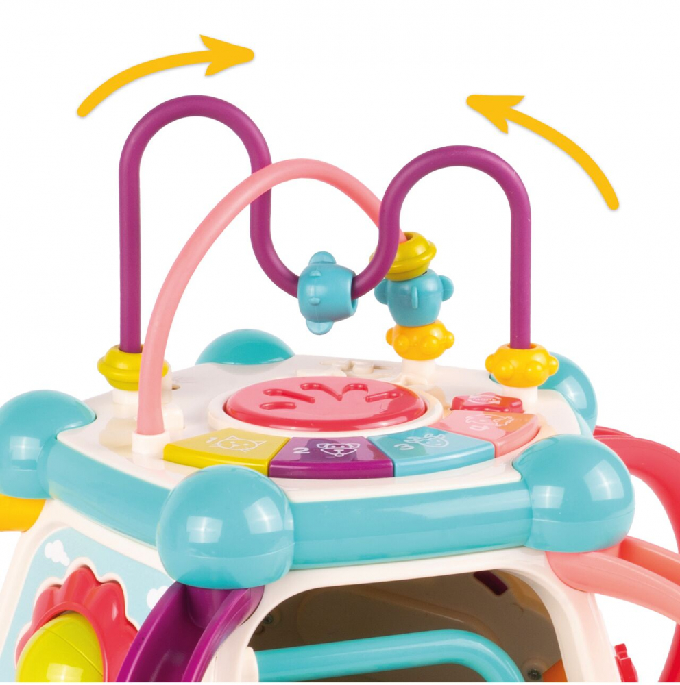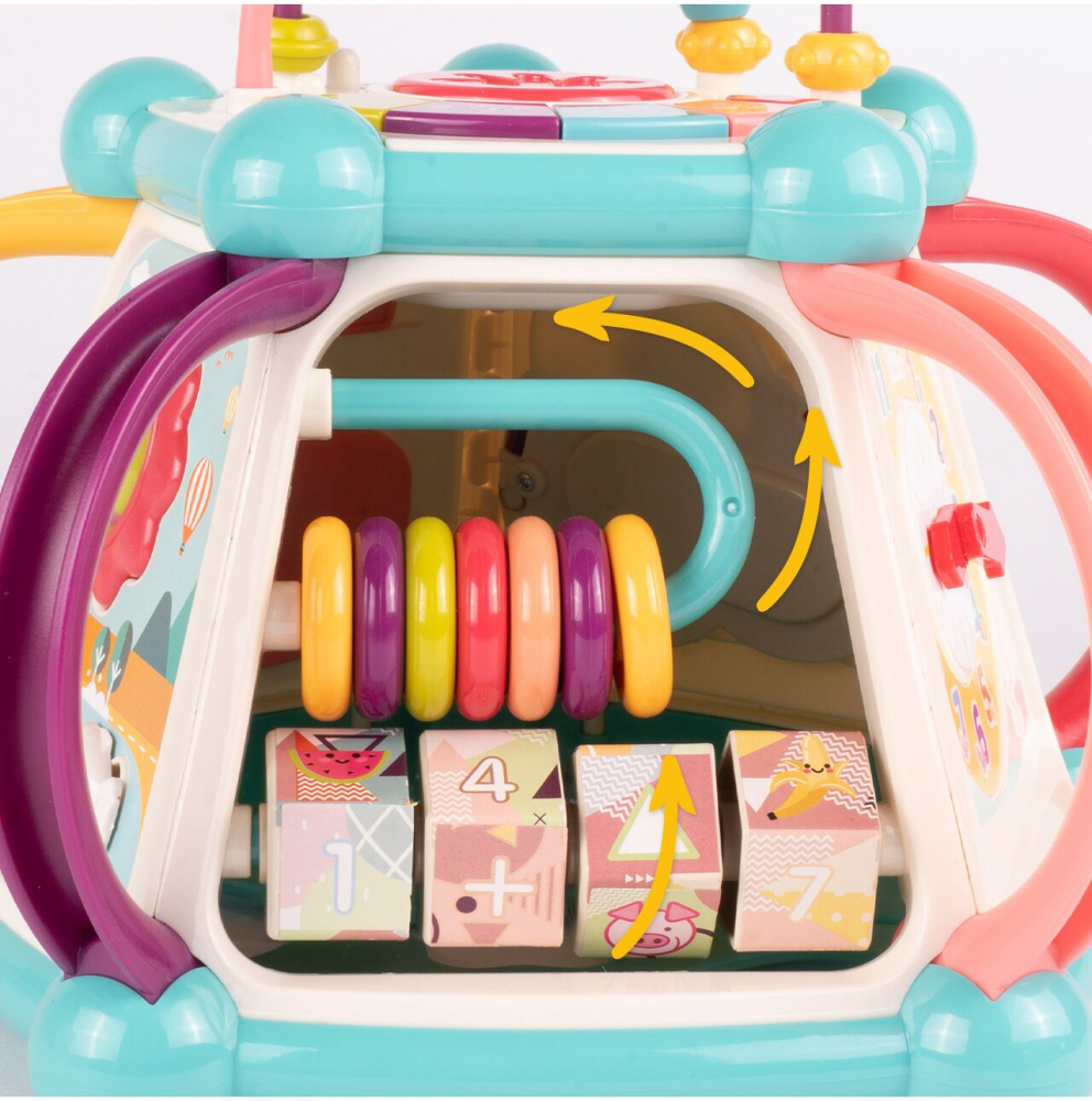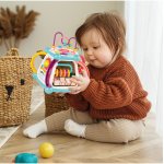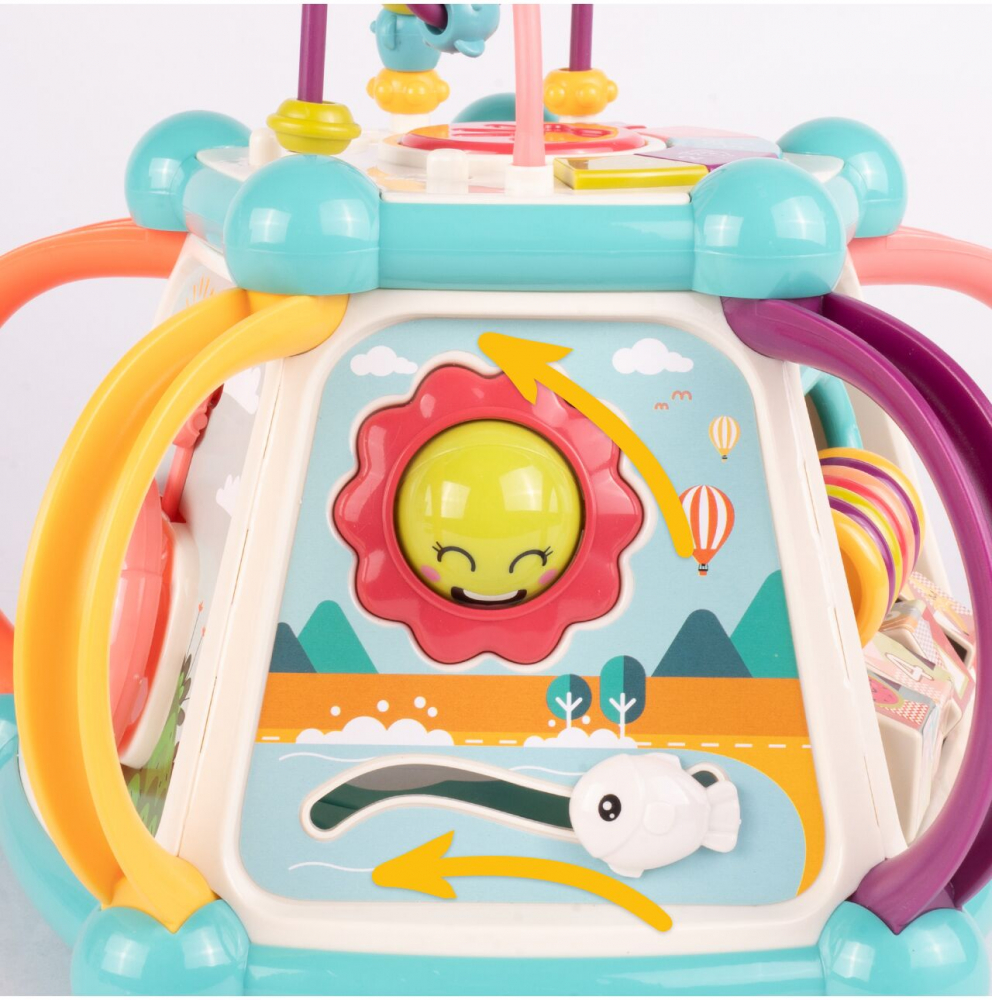 - Multifunctional: Fiecare fata a cubului ofera activitati diverse, cum ar fi un mini pian, labirinturi, roti dintate si un ceas pentru invatarea orelor.