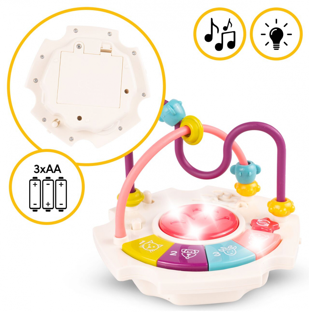 - Dezvoltarea Abilitatilor Motorii: elementele rotative, blocurile glisante si butoanele ajuta la exersarea degetelor si la dezvoltarea coordonarii ochi-mana.