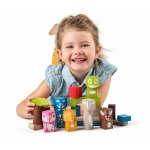 Setul contine 26 de blocuri de lemn in diferite forme cu amprente frumoase de animale.