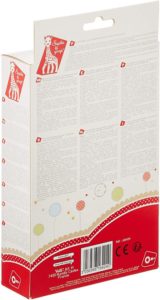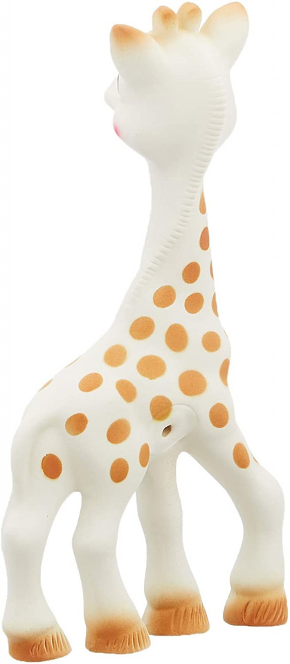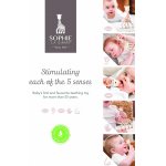 * Mirosul: mirosul aparte al cauciucului extras din arborele de Hevea o face pe Sophie sa fie usor de recunoscut de catre bebelus dintre toate jucariile sale.