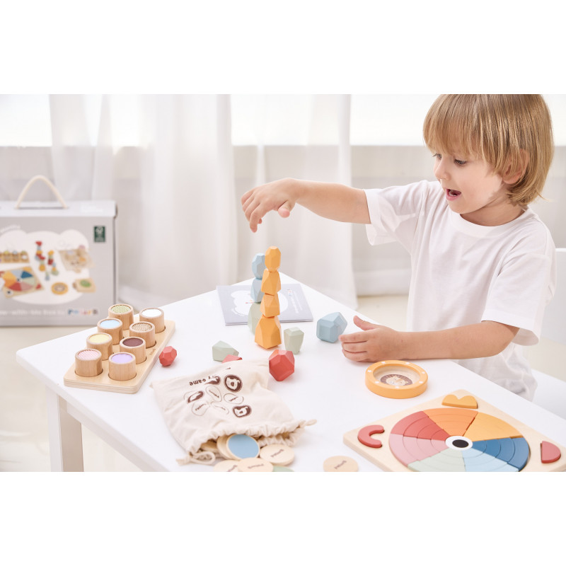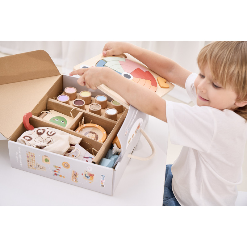 Conform filozofiei noastre, am creat colectia Grow-with-Me Box, un set de jucarii educative special conceput pentru a sprijini invatarea si dezvoltarea copiilor in fiecare etapa esentiala a cresterii lor.