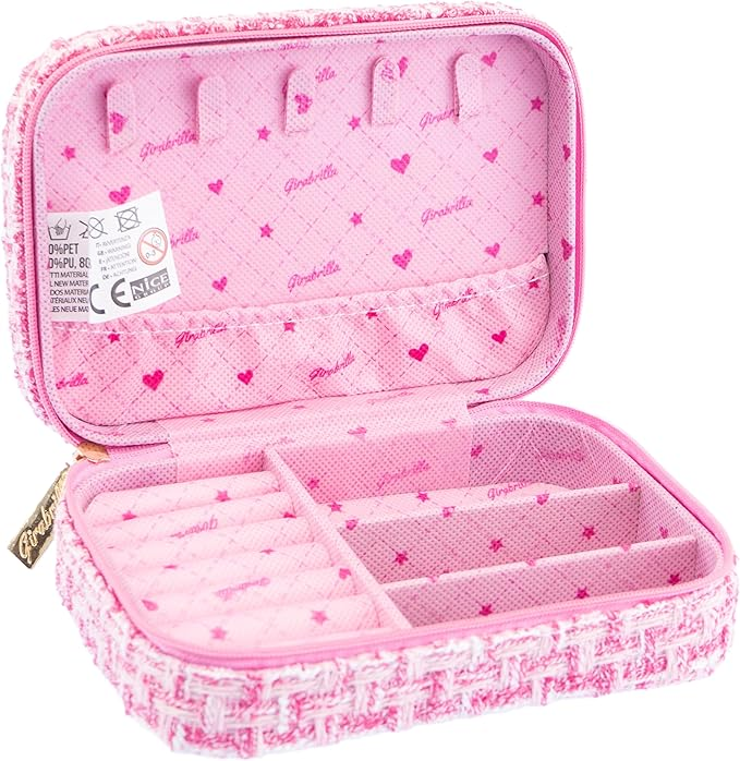 Cutia de bijuterii Girabrilla este perfectă pentru a depozita și transporta micile comori ale copiilor – brățări, coliere, inele sau agrafe.