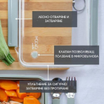 O soluție modulară puternică, ideală pentru depozitarea și transportul prânzului, fructelor sau gustărilor.