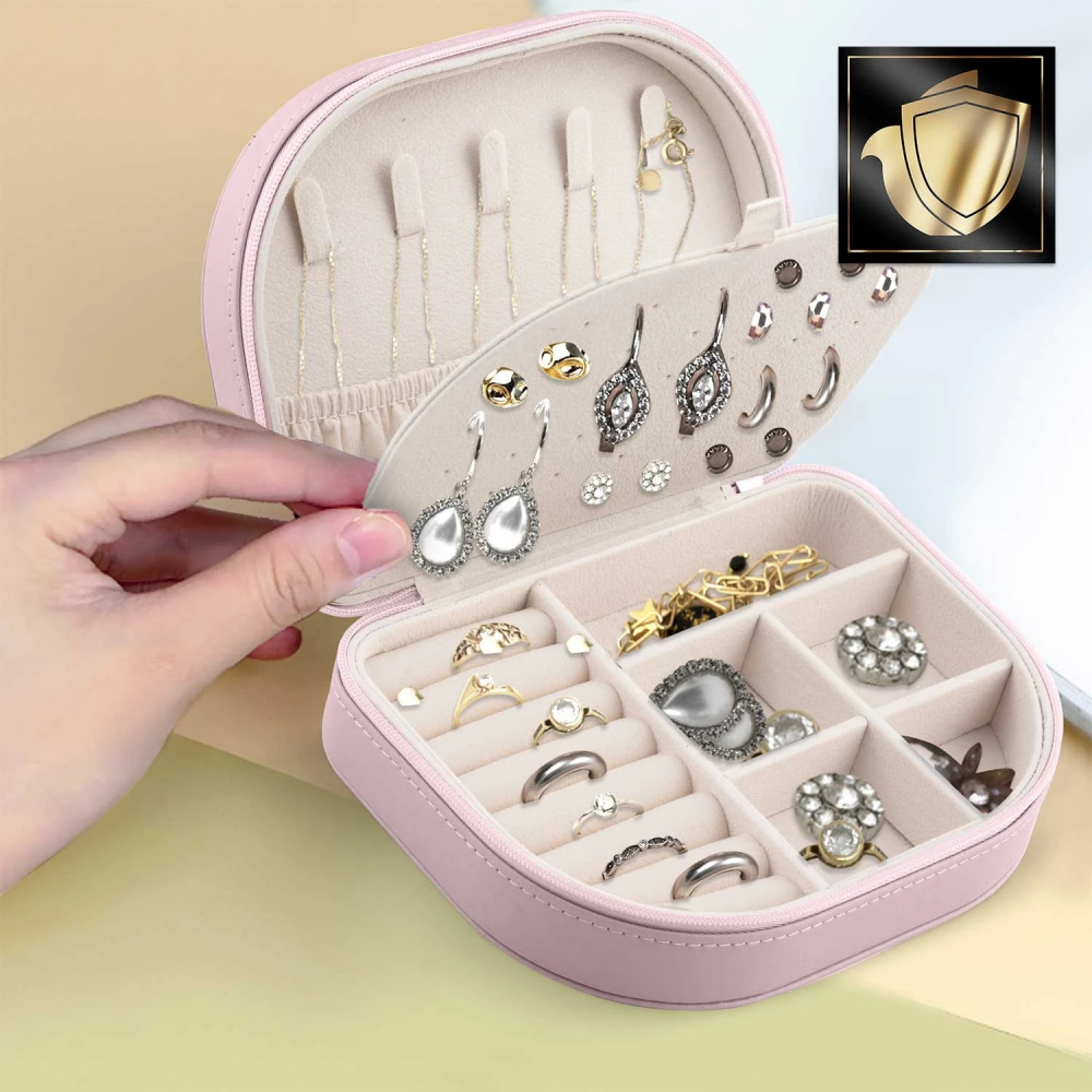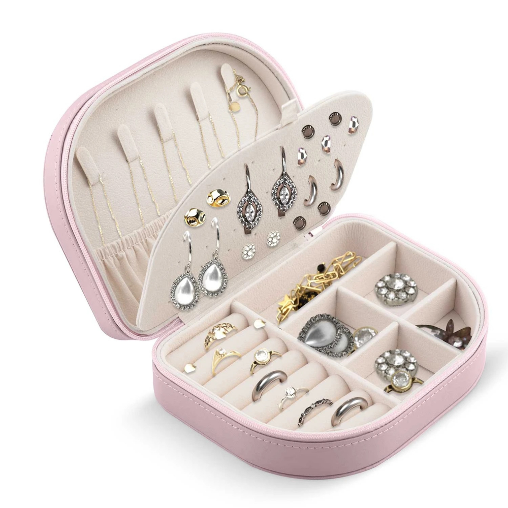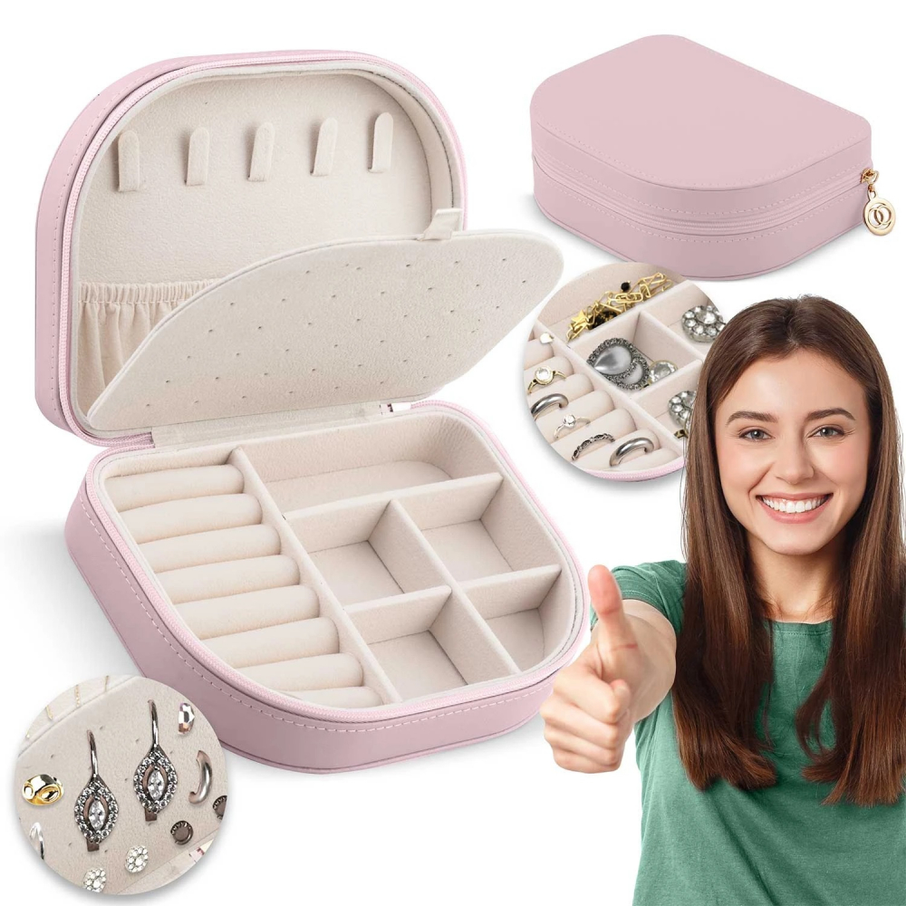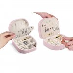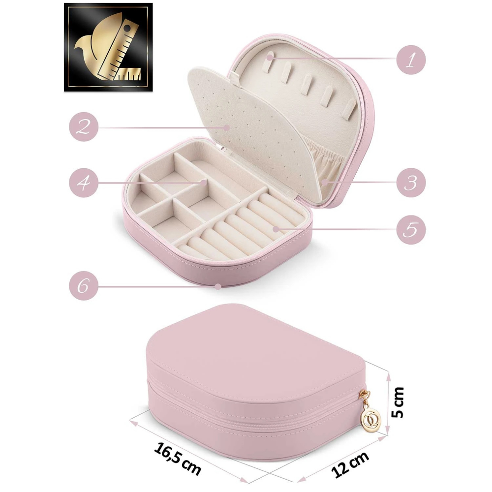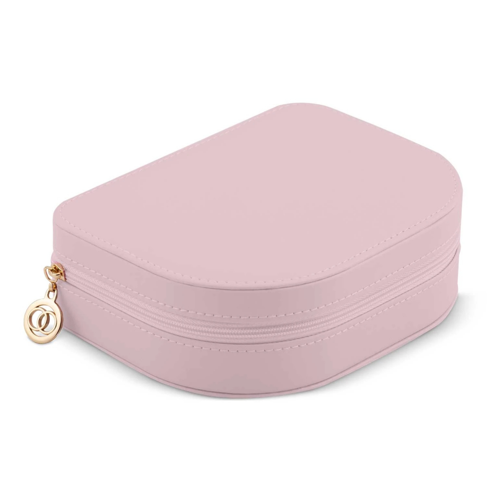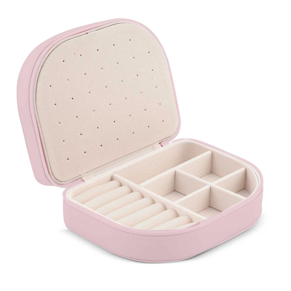 Cutie portabila pentru bijuterii/accesorii 16,5x12x5 cm cu fermoar si compartimentare practica Massido Roz