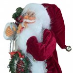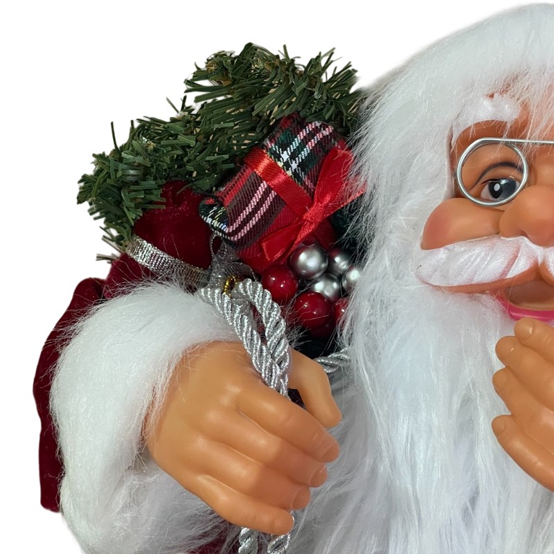 Figurina are o inaltime de 60 cm si dispune de diferite accesorii atractive: coronita, saculet de cadouri, ochelari, caciula cu clopotel sau haina cusuta cu blanita sintetica.