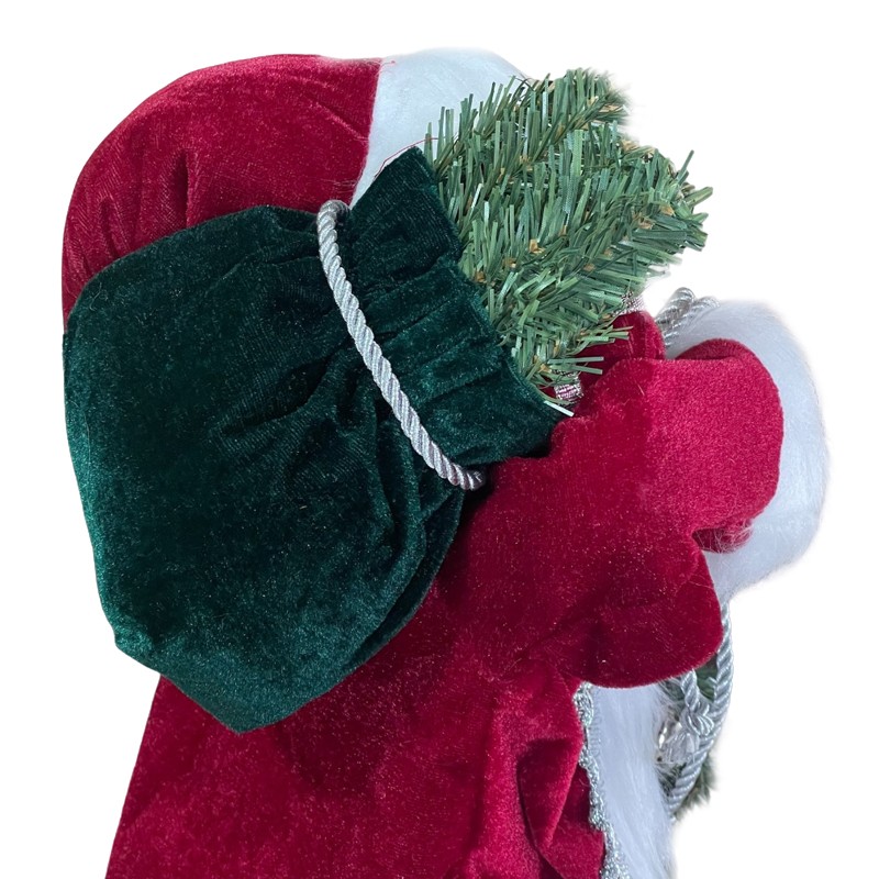 Decoratiune mos craciun 60 cm, sac de cadouri, coronita, blanita artificiala