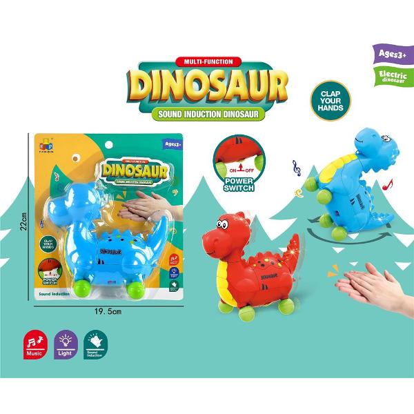 Dinozaur electric cu lumini si muzica, sensibil la controlul sonor: bate din palme si activeaza-i functiile!