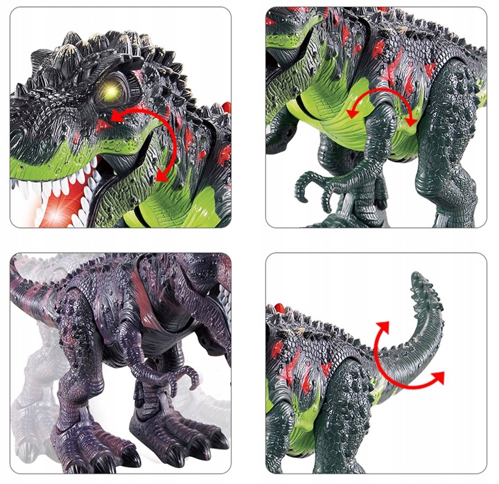 - Miscari realiste: urmareste cum dinozaurul tau se misca ca un adevarat pradator! Capul se inclina, membrele se misca, iar pasii lui sunt puternici si siguri.