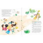 După ce Mami și Tati s-au purtat ciudat și foarte ciudat, acum e rândul Doamnei Educatoare să facă lucrurile pe dos. Doamna, care e mereu atât de aranjată, de calmă, care știe să cânte, să picteze și să spună poezii atât de frumos, care e mereu acolo cu brațele deschise pentru copii, care știe să-i împace și să-i liniștească, de data asta se poartă bizar. Vine la grădiniță în pijamale, nu vrea să rămână cu copiii și plânge că-i e dor de soțul ei, nu respectă niciun program, se înghesuie să se dea doar ea pe toboganul din curte, se așază la masă fără să se spele pe mâini, e complet lipsită de maniere, nu vrea să doarmă la prânz, iar seara decide că vrea să rămână la grădiniță peste noapte, să doarmă ca Albă ca Zăpada, pe paturile piticilor, adică ale copiilor.