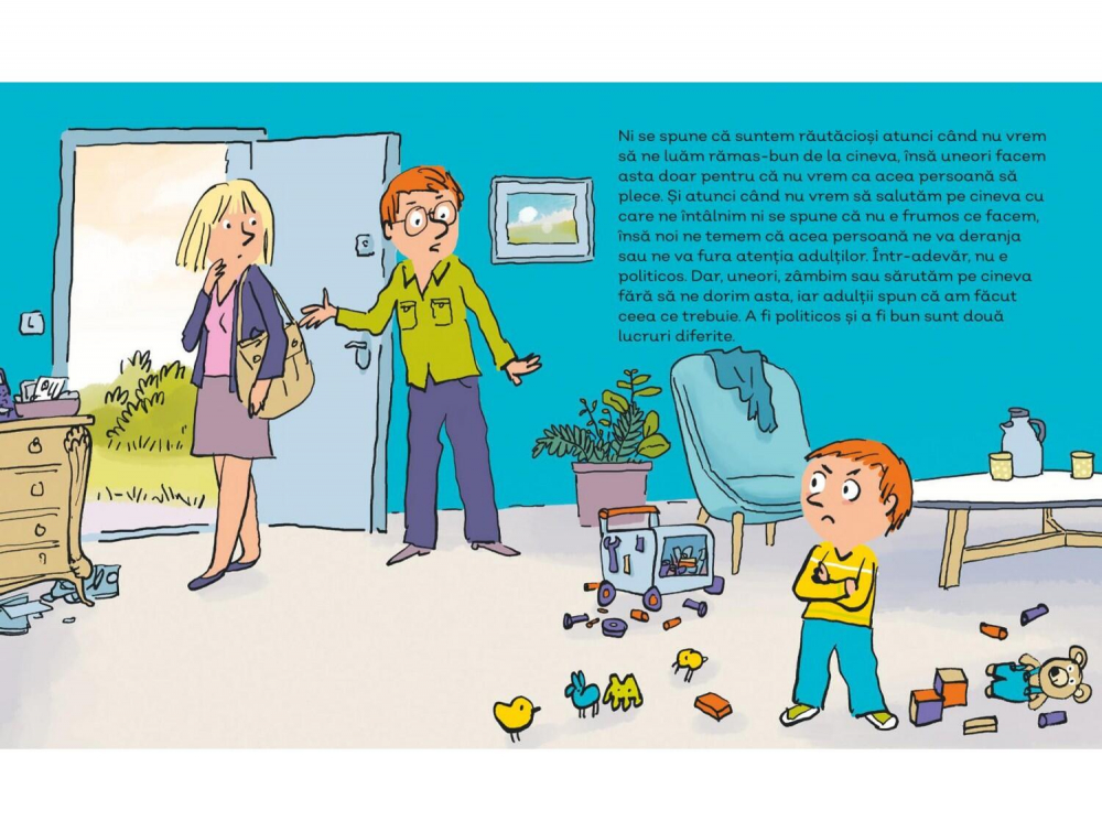 O lectură interesantă din care copiii află că există o mare diferență între persoană și comportament. Toți mai greșim uneori, chiar și fără intenție, acest fapt neaducând cu sine eticheta de “rău”. Nimeni nu este complet rău sau drăguț, dar oricine poate să facă rău sau să spună lucruri fără să-și dea seama, depinde de moment.