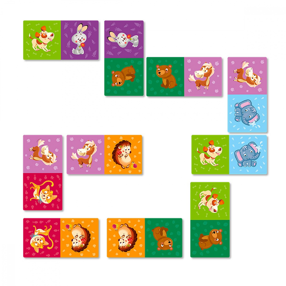 Domino Animale este un joc simplu, dar distractiv si educativ pentru cei mici, cu piese frumoase din carton imprimate cu animalute simpatice.