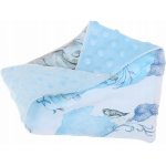 Esarfa moale pentru copii BabyMam, forma triunghiulara, sistem de prindere reglabil cu velcro moale, design 2-in-1 cu o fata din bumbac si una din minky blue