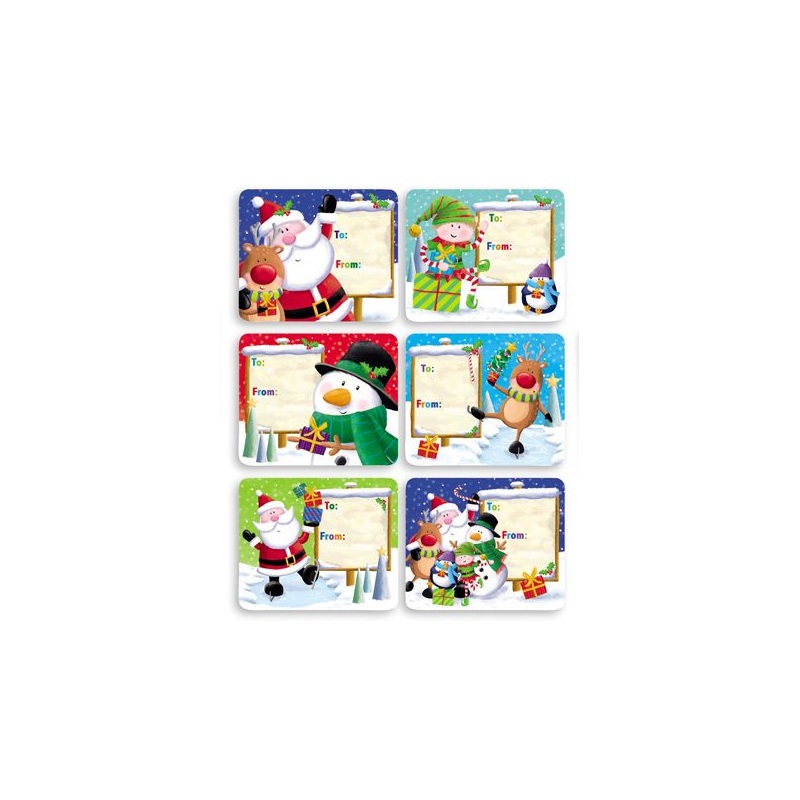 Etichete cadouri Craciun jumbo Mos Craciun si prietenii, completarea perfecta pentru cele mai frumoase cadouri! Alege pentru cei dragi cele mai frumoase cadouri, astfel le poti deosebi cu ajutorul acestor etichete colorate cu decor pentru sarbatorile de iarna.