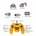 Telecomanda acestuia care permite controlul excavatorului de la distanta functioneaza cu 2 baterii de tip AA, acestea nu sunt incluse in pachet. Cu ajutorul ei puteti sa controlati in totalitate excavatorul, directia cupei, pentru rotirea turelei la 360 grade, deplasarea excavatorului inainte si inapoi si pentru virarea acestuia la stanga sau la dreapta.