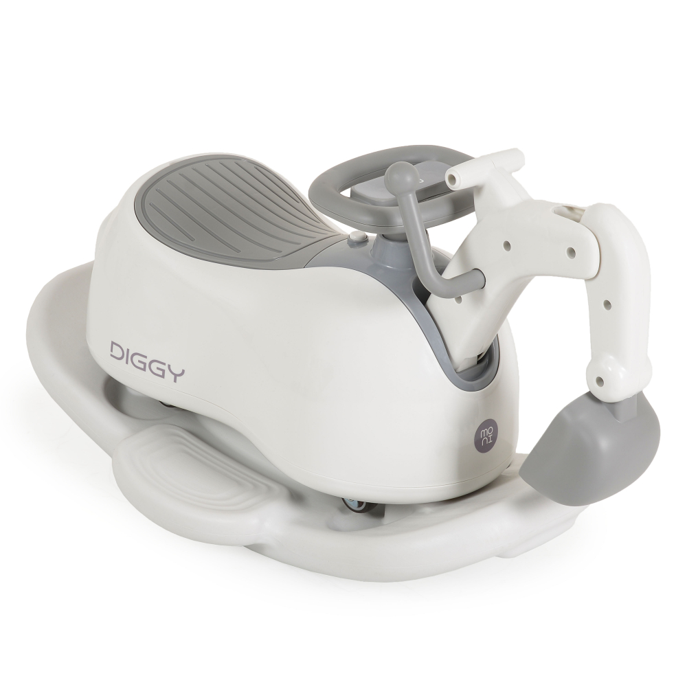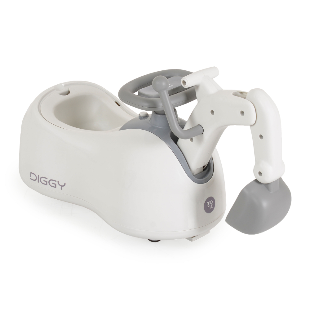 Excavator fara pedale Moni Diggy Grey tranformabil 4in1 cu Cupa mobila,Baza detasabila si transformare in balansoar,Olita incorporata,Sezut confortabil,Efecte muzicale si lumini,Recomandat de la 12luni,Greutate admisa 25kg