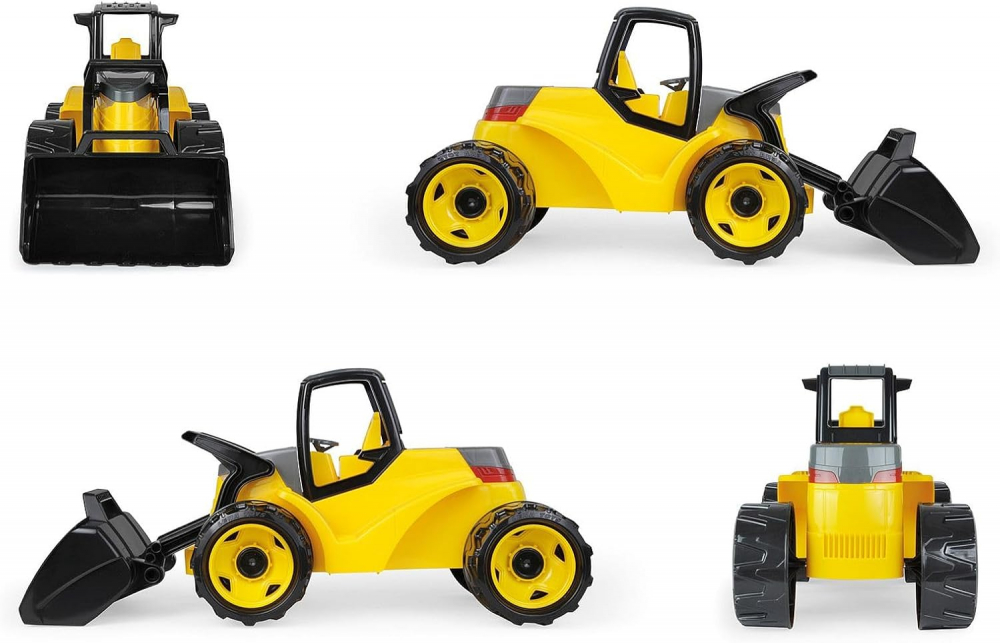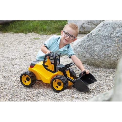 Excavator plastic cu cupa de 80 cm Lena galben cu negru fara pedale, se poate roti la 360 de grade si are o functie de blocare, sustine pana la 100 kg