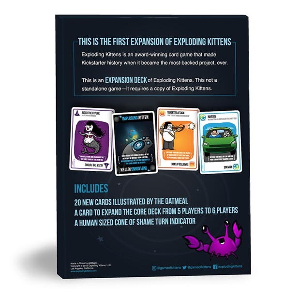 Imploding Kittens este prima extensie a jocului Exploding Kittens, jocul de carti super-premiat care a facut istorie pe Kickstarter, fiind cel mai sustinut proiect din platforma.
