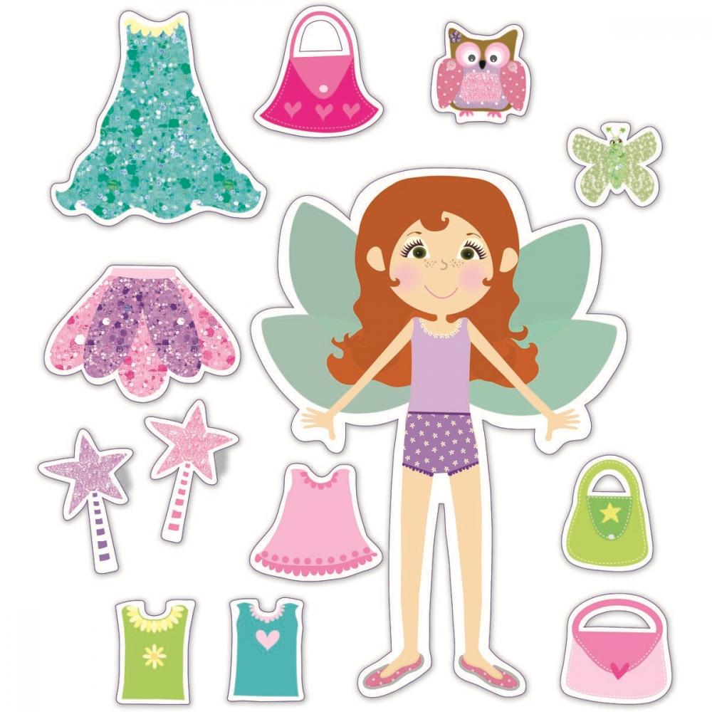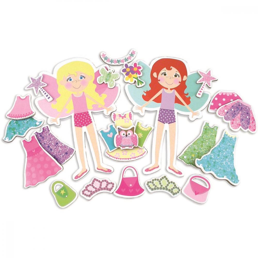 - plasati hainutele, coronitele si baghetele magice pe suprafata magnetica a zanelor
