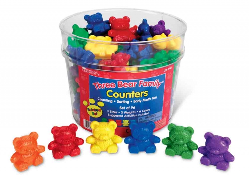* Ursuletii colorati realizati din plastic, prezentati in trei marimi diferite si cu trei greutati diferite sunt ideali pentru activitati de clasificare in functie de dimensiune, de comparare a greutatii, de numarare si sortare.