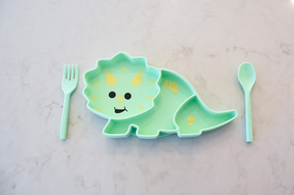 Farfurie compartimentata din silicon cu ventuza, Melii, dinozaur