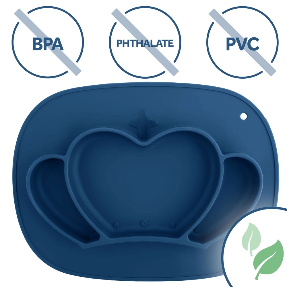 Farfurie compartimentata Ricokids Albastru royal cu capac din silicon ,fara bpa,potrivit pentru masina de vase si microunde