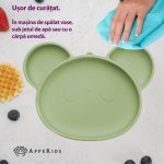 Farfurie din silicon cu ventuza AppeKids Panda Raw Green