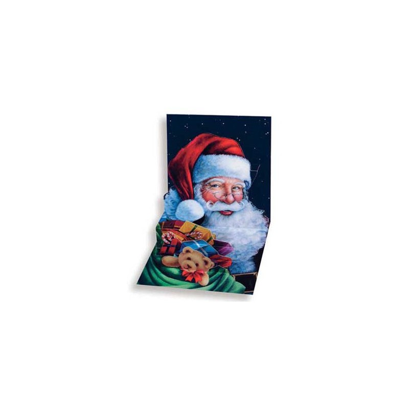 Felicitare 3D Treasures ilustrandul pe Mos Craciun si sacul de cadouri. Deosebit de spectaculoasa.