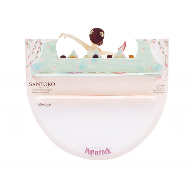 Felicitarea 3D PopnRock Balet iti va fascina prietenii prin miscarea in balans si elemente dinamice, speciale. Felicitarea este compusa din doua laturi si o baza care ne pune in scena elementele dinamice. Daruieste aceasta felicitare iubitorilor de dans si balet ca ziua lor sa fie mai buna. Pe spatele felicitarii vei regasi un camp pentru mesaj ca aceasta felicitare sa fie una de neuitat.