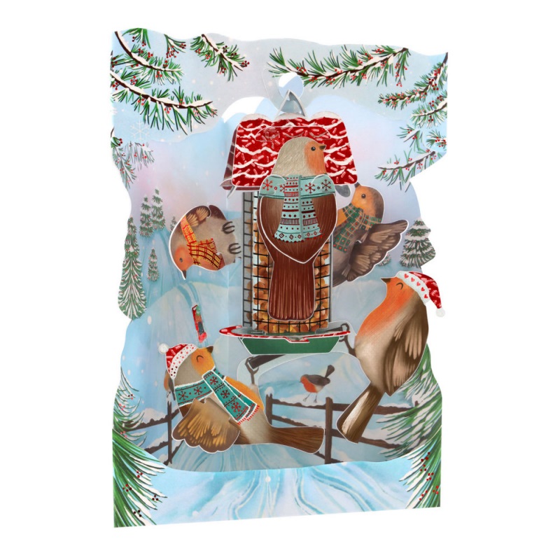 Felicitare 3D Swing Cards de iarna Vrabiile Craciunului