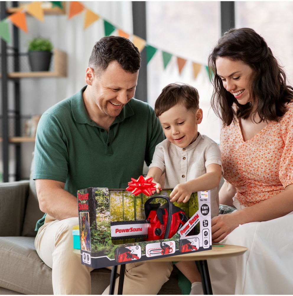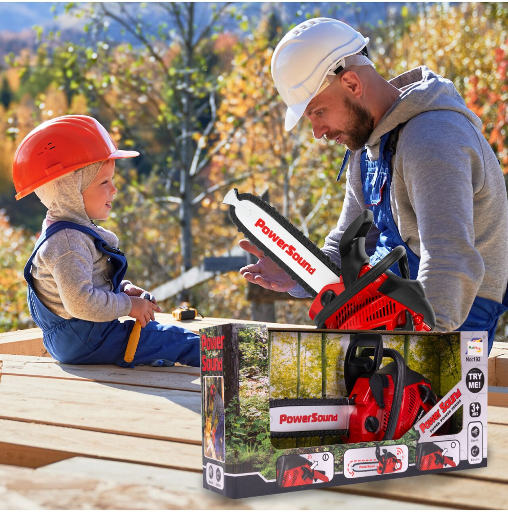 Copiilor le place să se modeleze după adulți observându-i la locul de muncă. Această jucărie imită un adevărat motoferăstrău cu sunet, un motor electric și un lanț în mișcare!