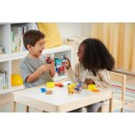 Setul contine si accesorii tematice de santier, inclusiv un disc rotativ, o cuva albastra si un recipient cu nisip kinetic pentru si mai multa distractie creativa.