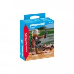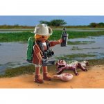 Introduceti mici exploratori in devenire catre minunile naturii cu setul PLAYMOBIL Figurina Cercetator cu Aligator.
