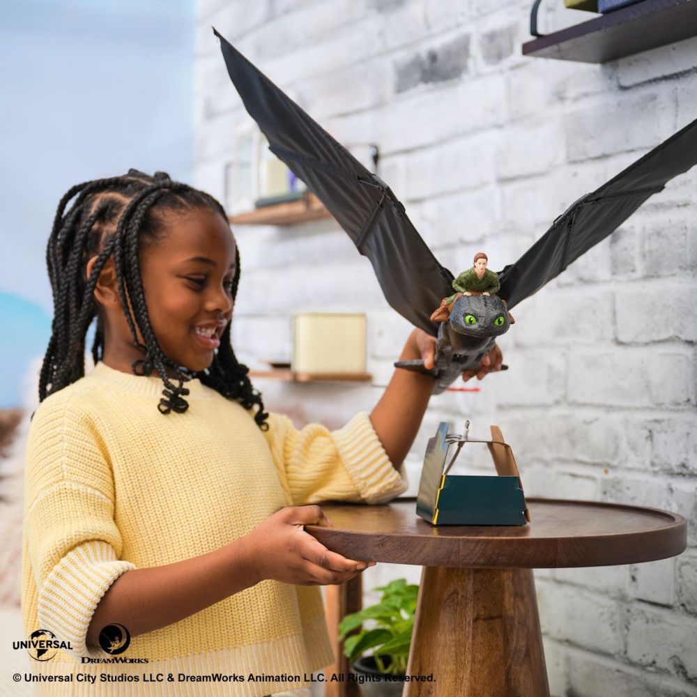 Include un controler de 2,4 GHz cu o raza de actiune de 76 de metri, astfel incat aventurierii, tineri si batrani, il pot comanda pe Toothless in aventuri epice.