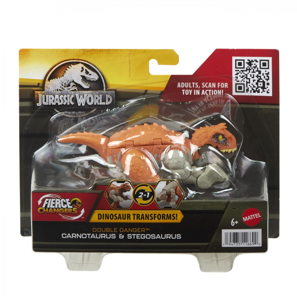 Figurina dinozaur transformabil Carnotaurus si Stegosaurus Jurassic World Fierce Changers Double Danger