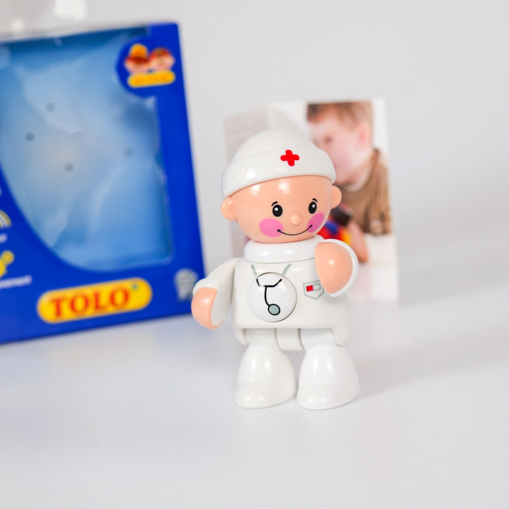Doctorul simpatic are brațe și picioare mobile, care fac click când le miști.