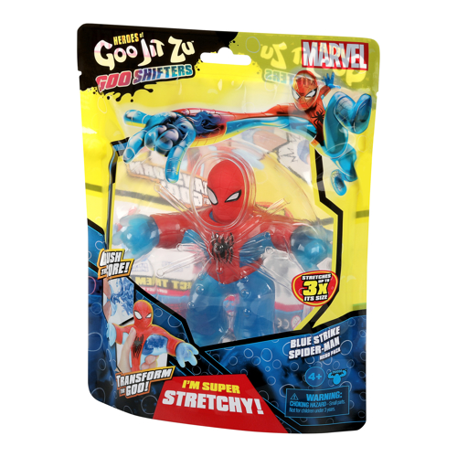 La fel ca si precedentul Goo Jit Zu, inspirat de Marvel, copiii il pot strange pe Blue Strike Spider-Man si pot vedea corpul lui moale miscand si intinde.