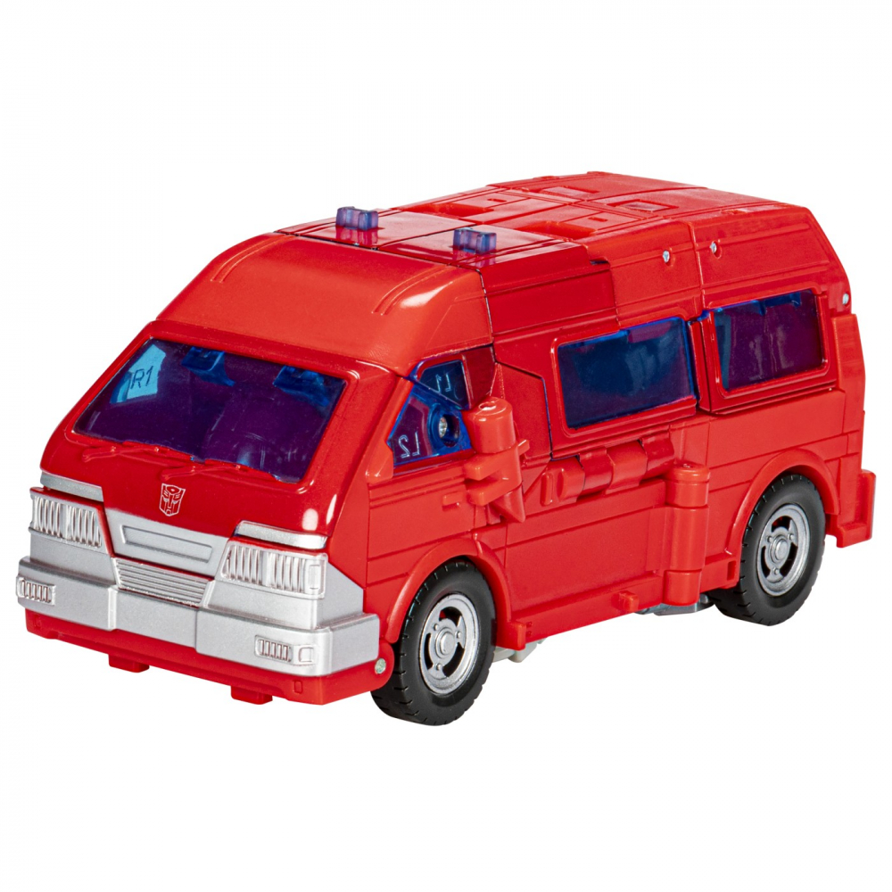 Aceasta serie Studio 86 Voyager Class The Transformers personajul inspirat din filmul Autobot Hot Rod se transforma din modul robot in modul masina sport in 29 de pasi.