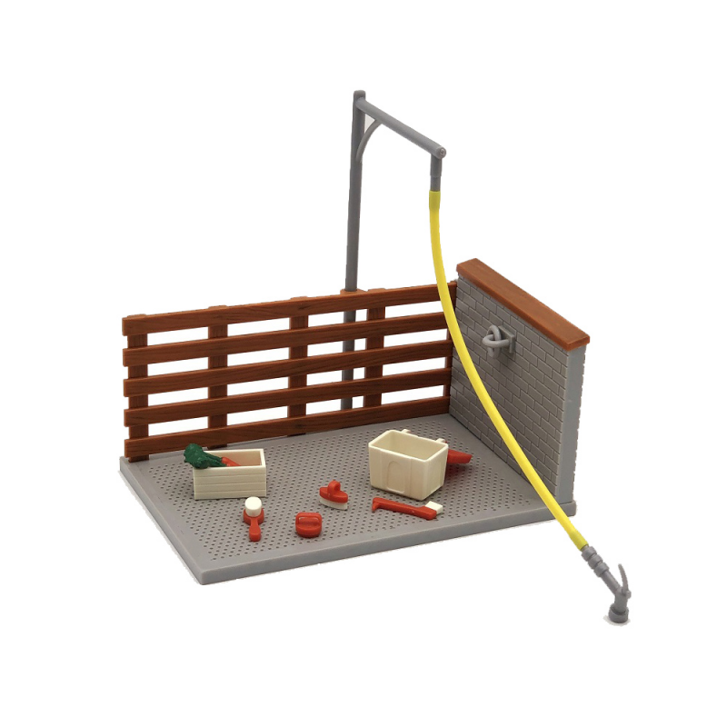 - Setul spalatorie cai de la Papo contine: structura grajd, si inca 7 accesorii: 4 perii de diferite dimensiuni, 2 morcovi, 1 ladita pentru morcovi si o ladita frigorifica.
