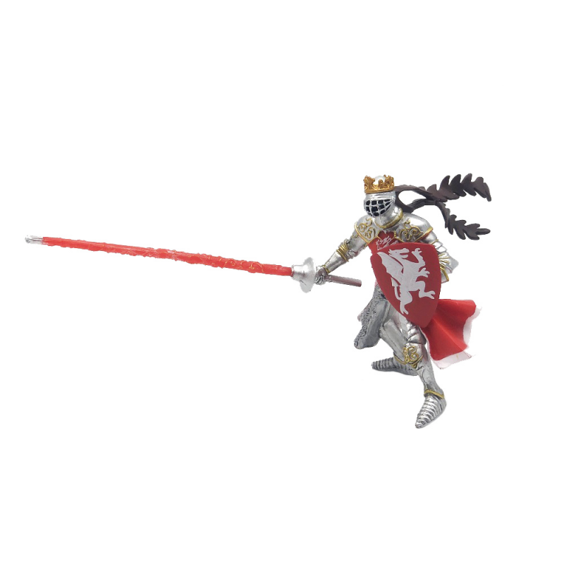 Figurina Papo Rege cu blazon dragon (rosu) poate fi transmisa din generatie in generatie, ea fiind fabricata dintr-un plastic special care isi pastreaza proprietatile mult timp.