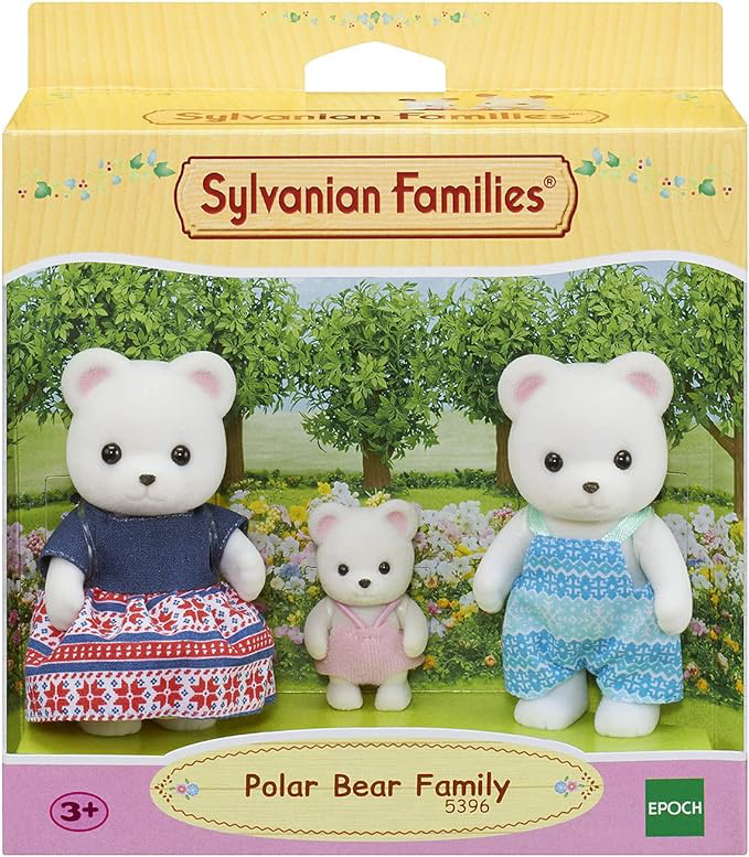 Setul de Figurine Sylvanian Families - Familia Ursuletilor Polari este format din cele trei personaje: tatal urs polar Seamus, mama urs polar Maya si Yana, fetita urs polar.