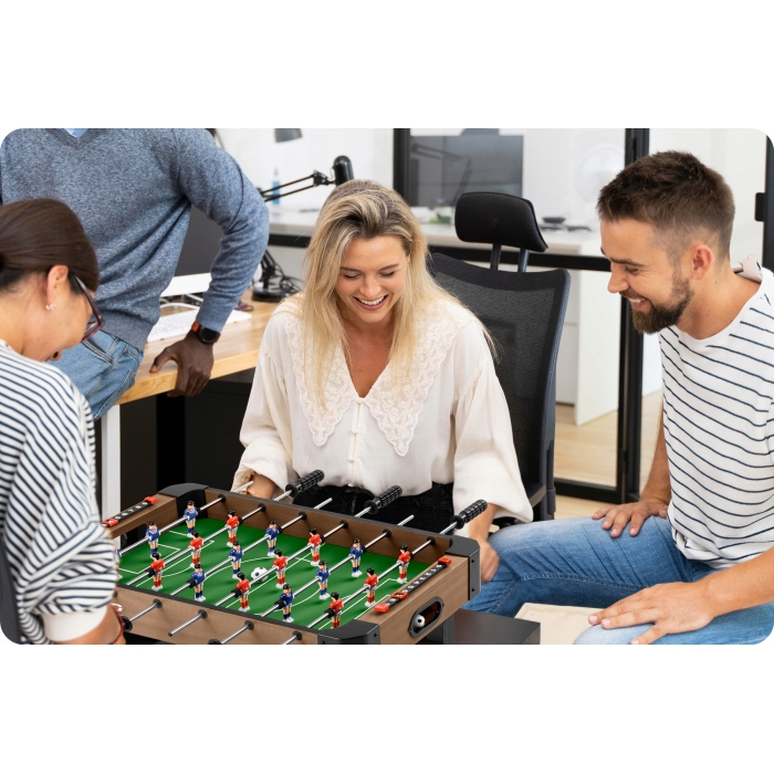 Acasa, la scoala, la prieteni - mini fotbal de masa va oferi multa emotie si distractie grozava peste tot.Acest joc social nu este niciodata plictisitor!