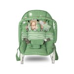 Fotoliu balansoar pentru bebelusi Lorelli Eliza Green Train cu spatar reglabil si bara cu jucarii